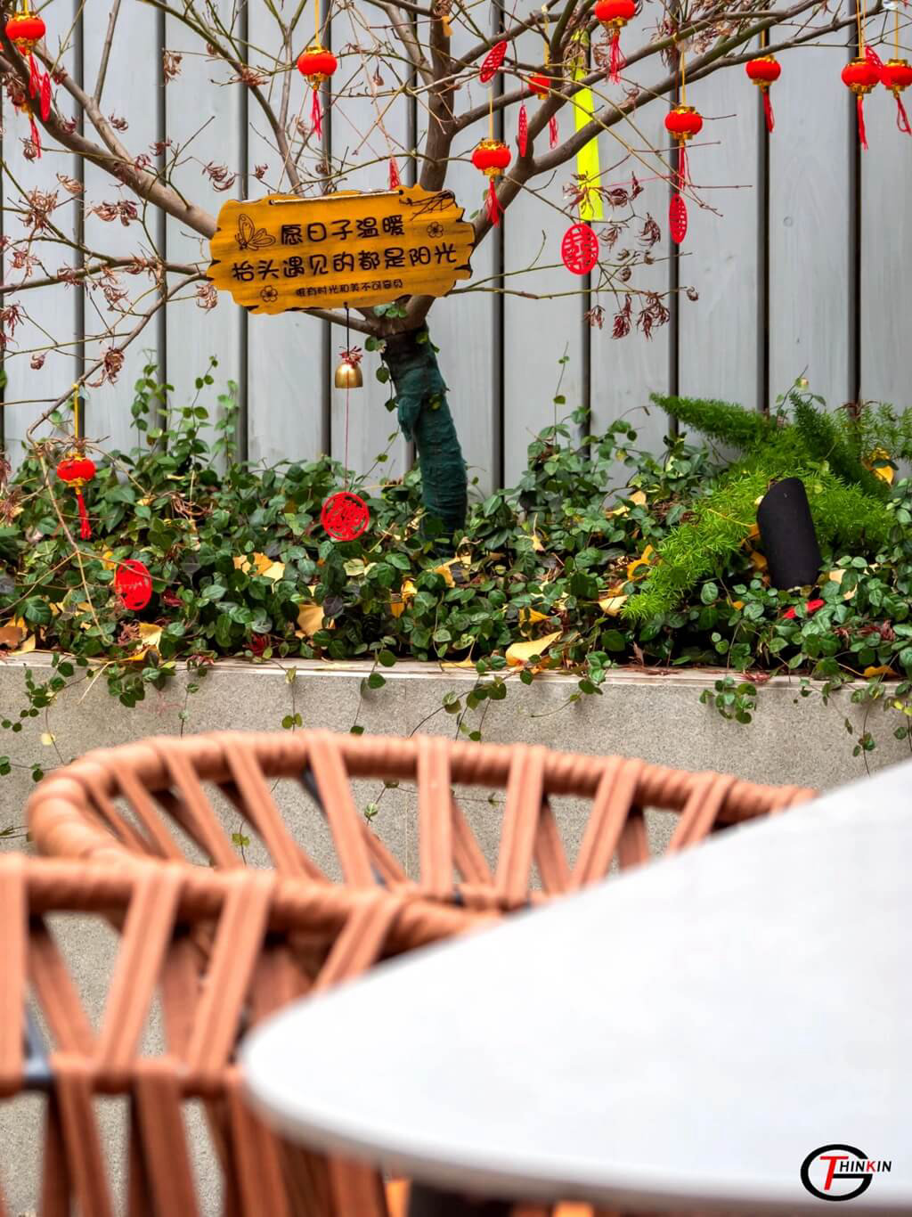 “愿日子温暖,抬头遇见的都是阳光。”特地将一棵树做成了许愿树,并将一句美好的祝福挂上。不管在庭院的任何角度,都可以看到这句话。和后续悬挂上的那些美好心愿一起,昭示着生活的蒸蒸日上。